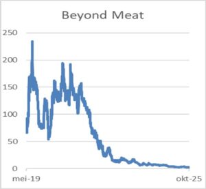 Een van die bedrijven die daarvan profiteerde was Beyond Meat. Een kansrijk bedrijf want steeds meer consumenten zouden vegetarisch willen eten. Het bedrijf ging in mei 2019 naar de beurs tegen een introductiekoers van $ 25. De eerste handelbare koers was meer dan $65 wat het enthousiasme van het bedrijf onder beleggers aangaf. Het enthousiasme bleef want de koers stond twee maanden boven de $ 220. De lening in maart 2021 die werd uitgegeven tegen de al genoemde 0% gaf recht om de aandelen te kopen tegen $ 206. Op dat moment noteerden de aandelen rond de $ 145. Terugkeer naar de oude koersniveaus zou een goede investering zijn. Echter het liep anders. De markt voor vegetarische producten groeide minder snel dan was verwacht. De grote voedselbedrijven kwamen met vergelijkbare vegetarische producten en vaak goedkoper. De koers staat inmiddels rond de $ 2,50 en de lening was nog maar 10% waard van oorspronkelijke 100%. Afgelopen week kwam er een financiële herstructurering. De oude converteerbare lening wordt ingewisseld naar een lening van 7%. Maar tegen een omwisseling van 18 cent per dollar oude lening. Of die uiteindelijk zal worden afgelost is onzeker want ondanks de daling van de schuld is het niet zeker dat het bedrijf zal overleven. De nieuwe lening valt onder de categorie Junkbonds. Geen lening voor rustige beleggers. Nu heeft Beyond Meat nog het voordeel dat de markt voor bedrijfsleningen (waar Junkbonds een onderdeel van zijn) positief is. In de afgelopen week was het verschil tussen bedrijfsleningen en staatsleningen 2,8%. Het gemiddelde over de afgelopen jaar was 4,5%. Er zijn zelfs bedrijven zoals Microsoft die goedkoper kunnen lenen dan de Amerikaanse overheid. En de laatste staat toch voor de meest betrouwbare debiteur te wereld. Dat bedrijfsleningen zo gewild zijn is opmerkelijk als we kijken naar de faillissementen van de afgelopen maanden. Meest in het oog springend was die van First Brands (een fabrikant van auto-onderdelen) eind september. Ook kleinere bedrijven lieten weten dat men niet meer aan de betalingsverplichtingen konden voldoen. Ook het gegeven dat meer dan 5% van de leningen op auto’s niet meer worden betaald omdat consumenten het geld niet meer hebben is een teken dat het allemaal niet goed gaat. Dit alles doet een aantal analisten denken aan de jaren 2007. Ook toen was de spread voor bedrijfsleningen laag en begon een aantal bedrijven om te vallen. Het resulteerde uiteindelijk in de financiële crisis van 2008. Er is dus reden om zorgen te maken op een herhaling. Echter er is een groot verschil dat we de afgelopen tijd al vaker hebben aangehaald. Banken lenen niet zoveel aan bedrijven. De functie is overgenomen door Private Equity. Daar zullen de grote klappen in komen. Banken zullen dus buiten de grote faillissementen blijven En dat zal minder implicaties hebben voor de economische groei. De vergelijking met het rampjaar 2008 lijkt dan ook kleiner.