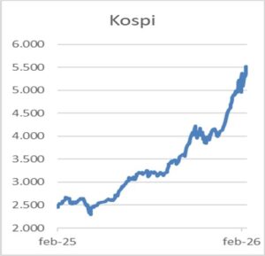 De S&P500 bevat 500 aandelen en is dan ook in principe een betere indicator van het sentiment op de aandelenbeurzen. Het historisch hoogste niveau werd eind januari bereikt op 7.000. Aandelenindexen van andere landen bereikten de afgelopen weken eveneens recordstanden. De Europese StoXX600 bereikte afgelopen donderdag de hoogste stand aller tijden. De afgelopen week kwam ook de Japanse aandelenindex de Nikkei 225 op het hoogste niveau ooit. Datzelfde geldt voor de Zuid-Koreaanse Kospi index. Deze index is in sinds juni vorig jaar met 100% gestegen. De Chinese beursindex (CSI300) is een dissonant. De hoogste koers aller tijden is van vijf jaar geleden en staat nu ruim 20% lager dan het niveau van februari 2021. Dan volgt natuurlijk altijd de vraag of de indexen die op het hoogste niveau aller tijden staan en wellicht de komende jaren met eenzelfde percentage dalen als de Chinese beursindex. Nu is het een verkeerd uitgangspunt om te stellen dat na het bereiken van een nieuw record het tijd wordt om uit de markt te stappen. Als voorbeeld de Kospi. Deze bereikte in november vorig jaar het hoogste niveau op 4.200. En na een 10% reactie in twee weken tijd werd de stijging hervat naar het huidige niveau van 5.500. De verkopers op 4.200 hebben derhalve maar kort gelijk gehad. Maar zoals dat altijd bij beleggingsadviezen staat: “De historie is geen garantie voor de toekomst”. In de Verenigde Staten komen steeds meer adviezen om uit de markt te stappen. Voor een deel wordt dit gebaseerd op de zogenoemde Super Bowl indicator. De winnaar van deze American Football wedstrijd waren Seattle Seahawks. Volgens deze indicator zou dat betekenen dat de aandelenkoersen het komend jaar zullen dalen. En inderdaad de afgelopen week daalde de S&P500 met 1,4%. Daarmee komt de index op een jaarverlies zij het een beperkte 0,14%. Nu is het onverstandig om op basis van de Super Bowl index een beleggingsbeleid te voeren. De indicator is namelijk even vaak fout als goed dus statistisch irrelevant. Wat kunnen beleggers die zich zorgen maken over de toekomst doen. Natuurlijk kan men alles verkopen. En dan op een spaarrekening zetten. Nu neemt de inflatie in Europa af. Over de maand januari was deze op jaarbasis 1,7%. Dat is nog altijd hoger dan de gemiddelde spaarrente bij diverse banken. Oftewel liquiditeiten zijn dus verliesgevend. 10-jarige obligaties hebben een hogere rente. Voor 10-jarige leningen 2,8%. Maar zoals in FT2R-2026 is het risico in obligaties nog altijd aanwezig. Andere alternatieven zoals goud of bitcoin hebben de afgelopen weken ook geen bescherming geboden. De simpele conclusie is dat aandelen nog altijd aantrekkelijk zijn. Anders bereikten ze ook geen record op record.