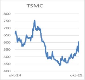 De reden voor de koersdaling was de angst dat een aantal banken in de VS zouden omvallen. Dat zorgde voor forse koersverliezen bij de Europese banken. Dat het Amerikaanse financiële systeem op kraken staat is een wat kortzichtige stelling. De winsten over alleen het derde kwartaal van de zes grootste banken is $30 mrd. Ter vergelijking. De Nederlandse overheid zal wellicht (er zijn nog geen officiële cijfers) een tekort hebben over dezelfde periode van ongeveer $ 12 mrd. Natuurlijk een wat kromme vergelijking maar het geeft aan welke enorme winsten het Amerikaanse bankensysteem heeft. En wat belangrijk is, in de vorige week gepubliceerde kwartaalcijfers was dat geen van de grote banken om maar iets bespeurde van stress in het financiële systeem. Als dat wel zo was dan had men het zeker gemeld en een deel van de winst naar de reserves gebracht. Er zijn in de afgelopen maanden zoals beschreven al heel wat waarschuwingen geweest van een komende crisis. Afgelopen week ook weer in het NRC: “Een zeepbel die te groot wordt om te knappen”. In het artikel (voor een groot deel gebaseerd op een eerder artikel in The Economist) wordt natuurlijk de parallel getrokken met 25 jaar geleden. Vele analisten blijven aangeven dat de hype in sommige aandelen kan zorgen voor een koerscorrectie. En dan hebben we het natuurlijk over de hype in AI oftewel kunstmatige intelligentie. Het is onmiskenbaar dat de koersen van de AI gerelateerde fondsen sterk zijn opgelopen. Neem bijvoorbeeld TSMC wat staat voor Taiwan Semiconductor Manufacturing Co. Het bedrijf kwam de afgelopen week met de cijfers. Die waren zeker indrukwekkend, namelijk een stijging van het nettoresultaat met 39%. TSMC levert chips aan bijvoorbeeld Nvidia en kan dan ook worden gezien als een goede indicatie voor de groei in AI. De omzet steeg met de al geprognotiseerde 30%. Kijken we dan naar de waardering ter beurze dan zien we een stijging van de koers van 35%. Die is gezien de omzetstijging gerechtvaardigd. Bovendien is de toekomstige koers-winstverhouding van het bedrijf 23, wat niet op een overwaardering duidt. Het verhoudingsgetal voor bijvoorbeeld LVMH staat op 27. Het lijkt redelijk verdedigbaar dat bij een crisis eerder minder luxe artikelen worden gekocht dan chips. Natuurlijk moeten waarschuwingen over mogelijke problemen in de financiële markten niet volledig worden genegeerd. Er kan altijd wat gebeuren, de beruchte Zwarte Zwaan. Maar aan de andere kant moet bedacht worden dat beleggers die een correctie vrezen al lang hun posities hebben aangepast. En dan zullen correcties, zoals bleek vrijdag, kort duren.